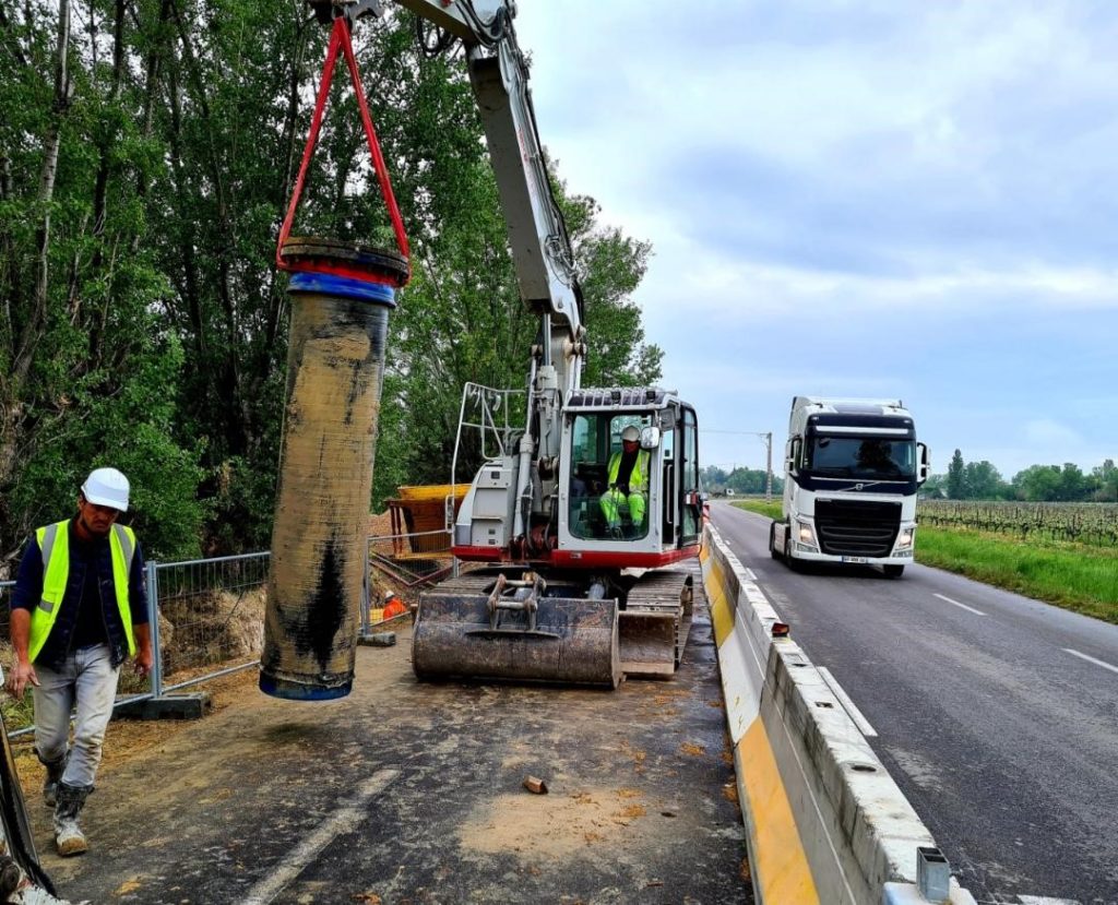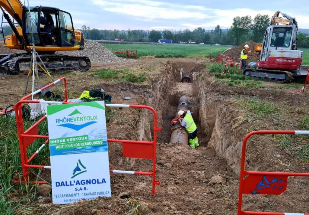 Les travaux de raccordement de la conduite en diamètre 600 mm sur la commune de Bédarrides sont en cours.